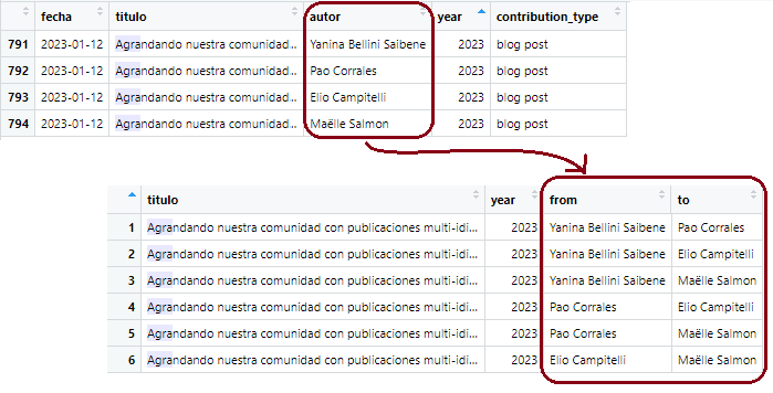 results <- datos |> group_by(titulo, year) |> filter(n() > 1) |> summarise(as.data.frame(t(combn(autor, 2)))) |> select(titulo, year, from=V1, to=V2)results <- datos |> group_by(titulo, year) |> filter(n() > 1) |> summarise(as.data.frame(t(combn(autor, 2)))) |> select(titulo, year, from=V1, to=V2)results <- datos |> group_by(titulo, year) |> filter(n() > 1) |> summarise(as.data.frame(t(combn(autor, 2)))) |> select(titulo, year, from=V1, to=V2)results <- datos |> group_by(titulo, year) |> filter(n() > 1) |> summarise(as.data.frame(t(combn(autor, 2)))) |> select(titulo, year, from=V1, to=V2)results <- datos |> group_by(titulo, year) |> filter(n() > 1) |> summarise(as.data.frame(t(combn(autor, 2)))) |> select(titulo, year, from=V1, to=V2)results <- datos |> group_by(titulo, year) |> filter(n() > 1) |> summarise(as.data.frame(t(combn(autor, 2)))) |> select(titulo, year, from=V1, to=V2)